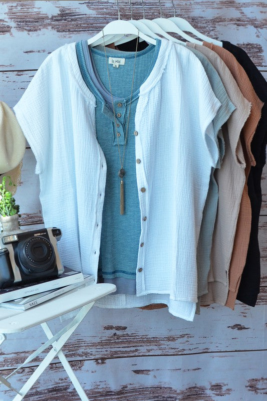 Sold outButtoned V-Neck Flounce Sleeve Top