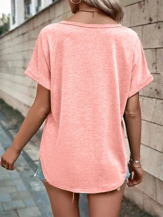 Full Size Solid V-Neck Short Sleeve T-Shirt Plus Size