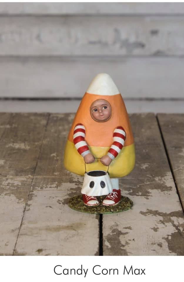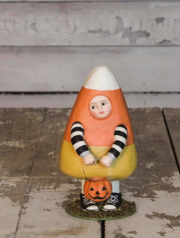 Isn't Halloween a treat when you're dressed up as a delicious candy corn? Featuring hand painted resin, this little boy is a perfect gift for a special little one in your life.