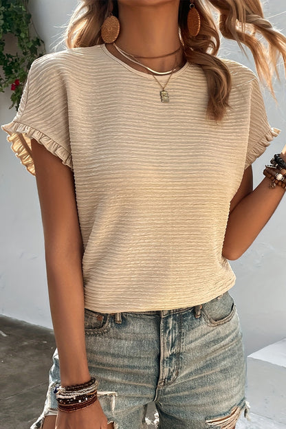 Frill Round Neck Short Sleeve Blouse