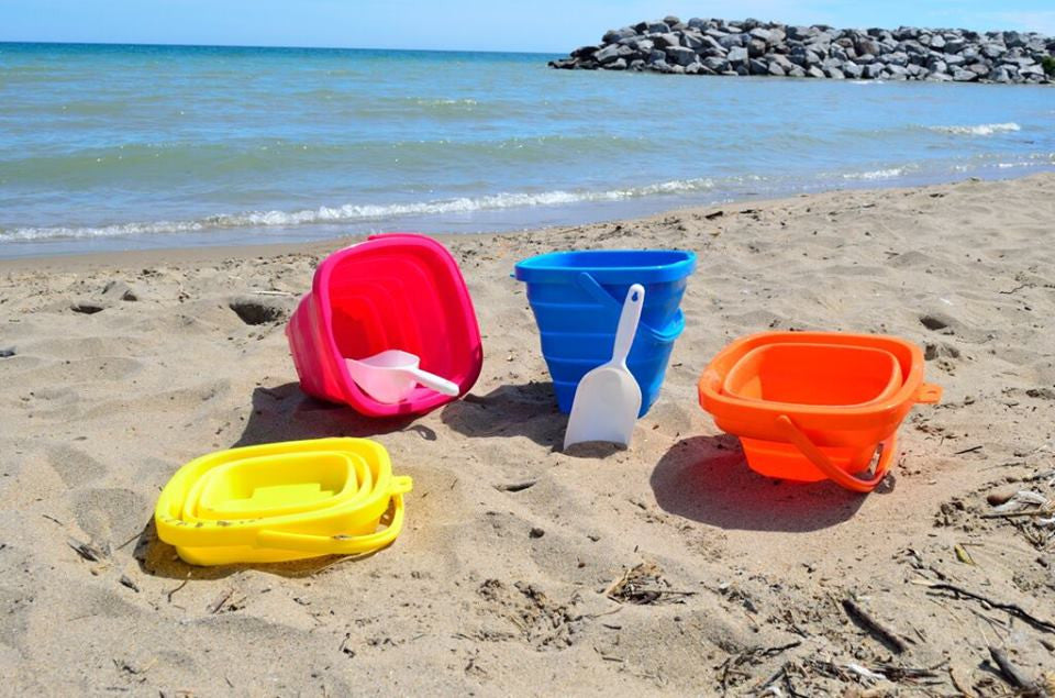 Packable Pails were invented by the stores owners Tom and Melissa Reed. Packable Pails collapse easily to store at less than 2 inches in your bag or suitcase. Ideal for the beach, sandbox, take to the park, Trick or Treating, Easter baskets, to wash the car, give the family dog a drink on a long trip and more!