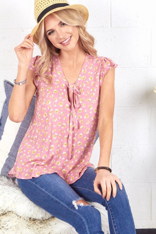 flower print woven top front string made in usa